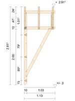 Das Sattelvordach Bayerischer Wald wird aus bestem Brettschichtholz, auch Leimholz genannt, hergestellt. Alle Verbindungen werden nach alter Handwerkskunst gezapft. Es handelt sich beim Vordach Bayerischer Wald um eine kleine Variante von Satteldächern. Das Sattelvordach Bayerischer Wald ist in den Dachneigungen 22° und 34° erhältlich. Zum Vordach Bayerischer Wald sind 15 verschiedene Abstützvarianten verfügbar, die nach Belieben kombiniert werden können. | ![]() |